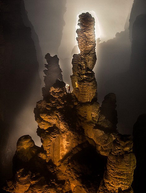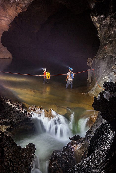 이 동굴은 산중에 있는 하류 동굴이란 의미로 가끔씩 비춰지는 햇빛을 통해 탐험가는 운좋게도 동굴 안의 복잡한 석질구조를 볼 수 있었다.