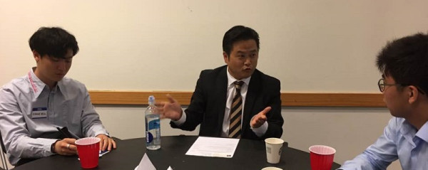 언론, 법률, 재정 등 각 분야에서 활동하고 있는 한인 전문가들이 멘토들로 참석해 관심사에 따라 모인 학생들을 대상으로 해당 분야에 대한 다양한 정보를 제공해 주었다.다양성을 존중하는 50대 기업으로 선정된 메스뮤추얼 사의 케빈 고 재정설계사가 학생들에게 이 분야의 전망과 취업정보를 제공해주고 있다.