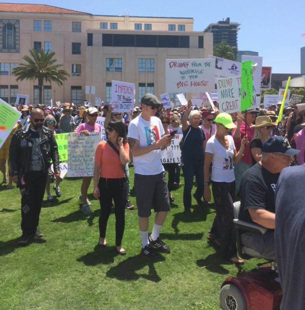 지난 3일 약 2,000여명의 시민들이 다운타운에서 트럼프 대통령 탄핵을 요구하는 시위를 벌였다<트위터 사진>