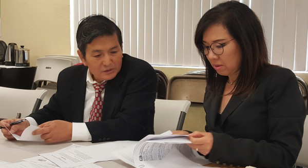 SD 한인상의 임종은 회장(오른쪽)이 유니스 부회장과 함께 비영리 등록에 필요한 서류를 검토하고 있다.