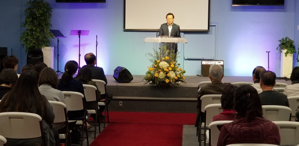 LA 총영사관과 샌디에고 한인회가 공동주관한 ‘한국국적 및 병역설명회’에서 양병돈 병무청 사무관이 관련 내용에 대해 설명하고 있다.