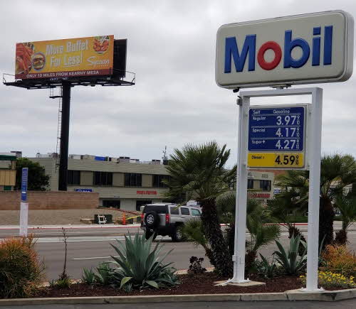 개스 가격이 급등으로 인해 주민들의 가계가 크게 위축되고 있는 가운데 콘보이 한인 타운에 있는 모빌 주유소의 갤런 당 가격이 4달러를 넘어섰다.