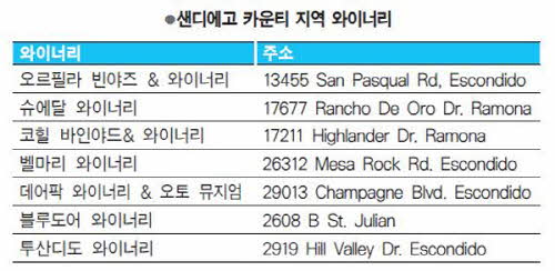 샌디에고 카운티에는 총 7개의 와이너리가 있다.
