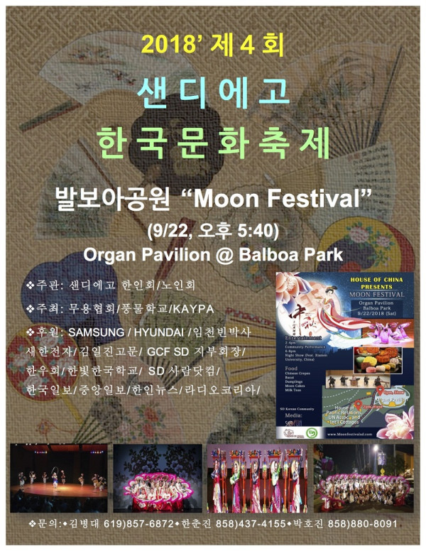 후원 문의: (619)857-68725(김병대 한인회 비상준비위원장), (858)437-4155(한춘진 무용협회 고문) (858)880-8091(박호진 풍물학교 상쇠)