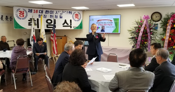 시니어센터는 지난 12월 14일 임시총회에서 15대 회장 잔여임기를 수행한 한청일 씨를 16대 회장으로 추대했다.<본보 2018년 12월 19일 A25면 참조>이 날 취임식에는 백황기 한인회장, 김진모 민주평통 오렌지-샌디에고협의회 회장, 김정아 글로벌 어린이재단 SD지회장 김일진, 김병대, 이묘순 전직 한인회장 등 약 100여명이 참석했다.