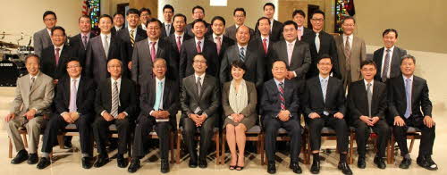 디사이플 교회가 창립 예배를 마친 후 교단 관계자들이 자리를 함께 했다.
