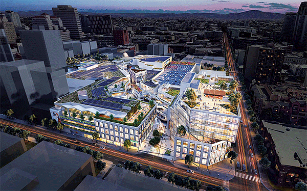 샌디에고 시의회가 다운타운 호튼 플라자를 첨단 기술을 도입한 복합용도 개발하는 프로젝트를 승인했다.