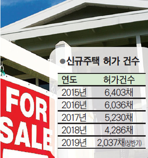 카운티 신규 주택 허가 건수는 지난 2015년(6,403채)을 기점으로 꾸준히 하향곡선을 그리고 있다.<도표 참조>