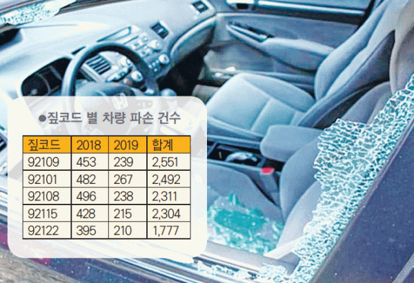 샌디에고 지역에서 매년 7,000 대 이상의 차량 파손 범죄가 발생하고 있다.