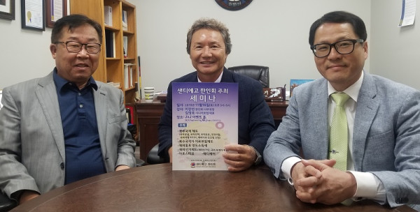 샌디에고 한인회가 오는 16일 실시하는 복수 국적제도와 복수국적자의 의료보험 세미나를 위해 관계자들이 취지와 내용에 대해 설명하고 있다. 오른쪽부터 이강선 사무국장, 백황기 한인회장, 김정욱 종합보험사 대표