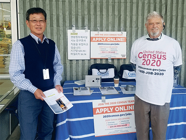 구직 신청은 온라인(202census.gov/jobs)이나 목요일과 일요일 시온마켓 앞에서 구직 활동을 펼치고 있는 부스에서 신청하면 된다.