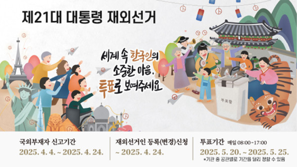 오는 6월 3일(화)로 예정된 제21대 대통령 선거를 앞두고, 재외국민 선거는 5월 20일(화)부터 25일(일)까지 전 세계 재외공관에서 치러진다.