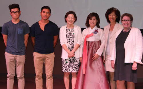 한글의 날 기념식 행사를 마친 후 최순자 교수와 박용미 서화서예교실교장, 김혜경 디렉터(왼쪽에서 두 번째부터)가 자리를 함께 했다.