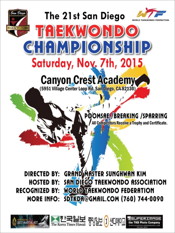 샌디에고한인태권도협회(회장 김성환)가 오는 11월 17일(토) 캐년 크레스트 아카데미에서 ‘제21회 태권도챔피언십 대회’를 개최한다.태권도협회 창립 21년을 맞아 열리는 이번 대회는 예년 대회와 마찬가지로 샌디에고를 비롯한 남가주와 애리조나, 네바다 주와 멕시코 티화나 지역 선수 약 800여명이 참석할 예정이다.