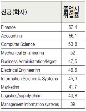 직원 채용과정에서 고용주들이 좋아하는 전공은 뭘까. 실용적이고 실무에서 바로 활용이 가능한 전공들이 인기가 있다. 이들은 졸업할 때 확연하게 선호도가 나타난다. 어떤 경우는 졸업도 미처 안했는데 데려가는 입도선매 경향도 보인다. 취직이 쉬운 전공을 꼽아보면 재무학(finance), 회계학(accounting), 컴퓨터 사이언스, 기계공학(Mechanical Engineering), 경영학(Business Administraion/Management)이다. 이들 전공은 학부 졸업시 거의 50%가 직장을 구한다. 표 참조> 인기 있는 전공자들이 갖게 되는 인기 있는 직업을 살펴본다.