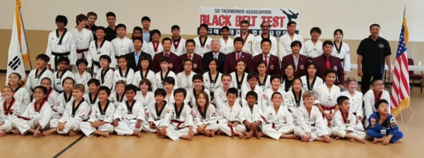 태권도협회가 주관한 블랙벨트 승단심사를 마친 후 참가자들이 자리를 함께 했다.