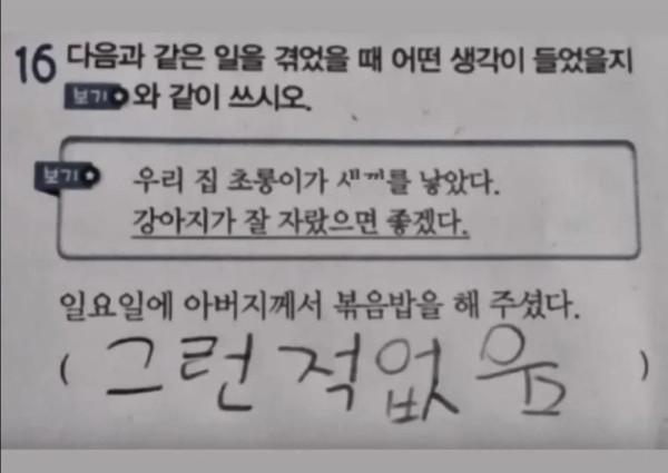 초딩들의 답글 작성자 정보 뜨거운감자 작성 작성일 2025.07.07 19:05 컨텐츠 정보 179 조회 0 추천 목록 본문 초딩들의 답글 0 추천 SNS 공유 관련자료 이전 추석때마다 와글와글 인천공항 작성일 2025.10.04 08:07 다음 기도를 완벽하게 이해한 아이 작성일 2025.05.30 21:17 댓글 0 등록된 댓글이 없습니다. 로그인한 회원만 댓글 등록이 가능합니다. 목록