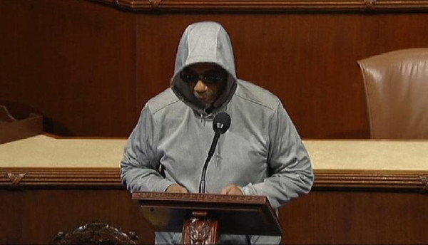 [바비 러쉬 의원이 후드 티를 입고 항의하는 모습 / mtv.fi]