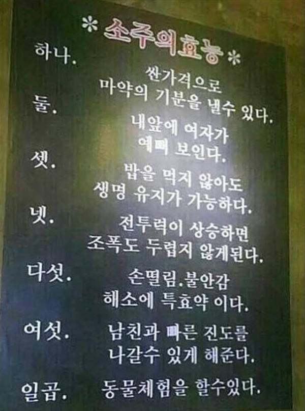 소주의 효능 작성자 정보 왕개미 작성 작성일 2015.01.24 15:29 컨텐츠 정보 12,021 조회 0 추천 목록 본문 ㅎㅎㅎㅎㅎ 0 추천 SNS 공유 관련자료 이전 사랑 너는 내 운명 작성일 2015.01.27 11:47 다음 오늘의 명언 작성일 2015.01.22 18:22 댓글 0 등록된 댓글이 없습니다. 로그인한 회원만 댓글 등록이 가능합니다. 목록