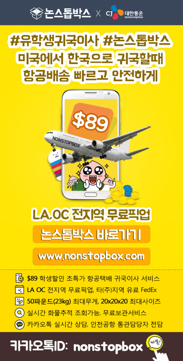 #CJ대한통운 #논스톱박스 #유학생귀국이사 #89불 #항공배송 #무료보관