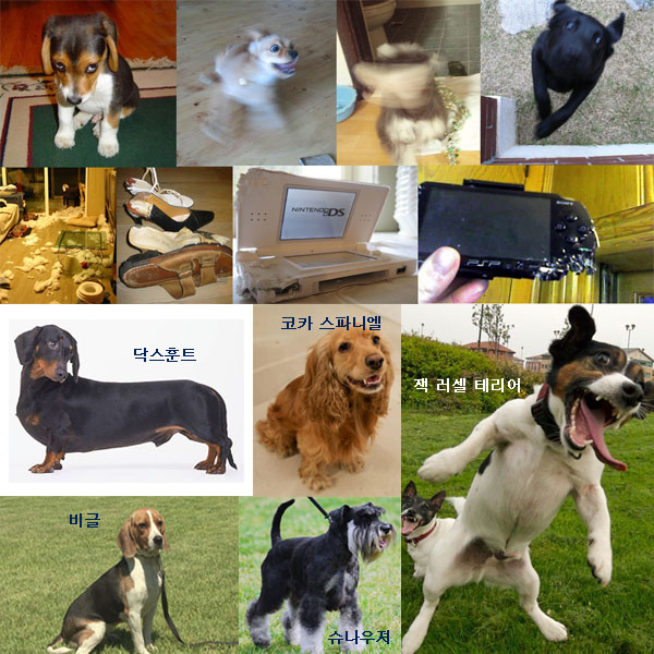 악마견에 대한 우스갯소리입니다. 말썽을 듣고 집안을 온통 폐허로 만드는 개들을 악마견이라고 부르곤 합니다. 좀 더 강하게 지옥견이라고 표현하기도 하지요. 애완동물이 아닌 ‘수양동물’이라 부르기도 합니다. 같이 살기 위해선 하루 하루가 인내의 나날이죠.