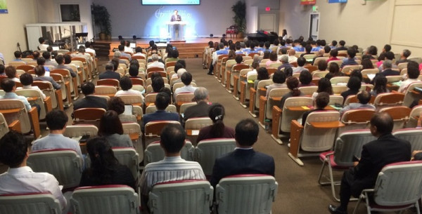 지난 15일 교협 주관 부흥성회에서 지역 성도들이 유관재 초청 강사의 말씀을 경청하고 있다.